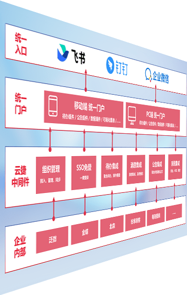 对协作平台提供支持服务,,支持企业应用与协作平台对接,,包含组织同步、、、、消息集成、、、、待办集成等。。。。支持目前主流的协作平台:钉钉、、、企微和飞书。。